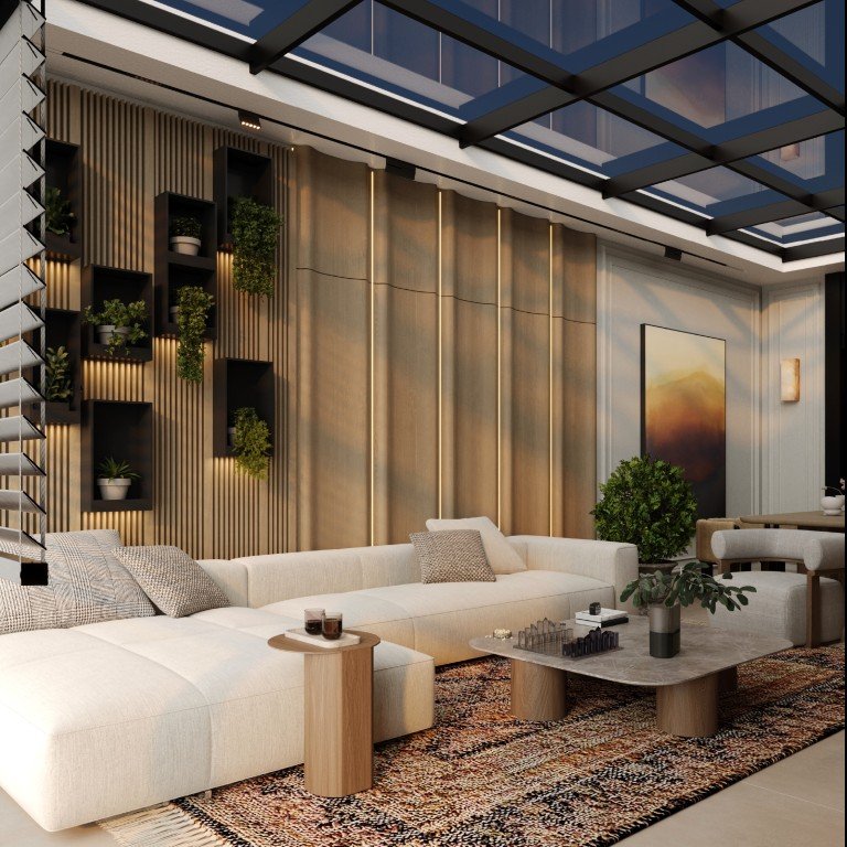 Projenin öne çıkan detayı olan kış bahçesi, şehir hayatının ortasında doğayla iç içe bir dinlenme alanı sunuyor. Geniş hacimler, gün ışığını vurgulayan tasarım dili ve konforlu planlama ile estetik ve işlevsellik bir araya geldi.