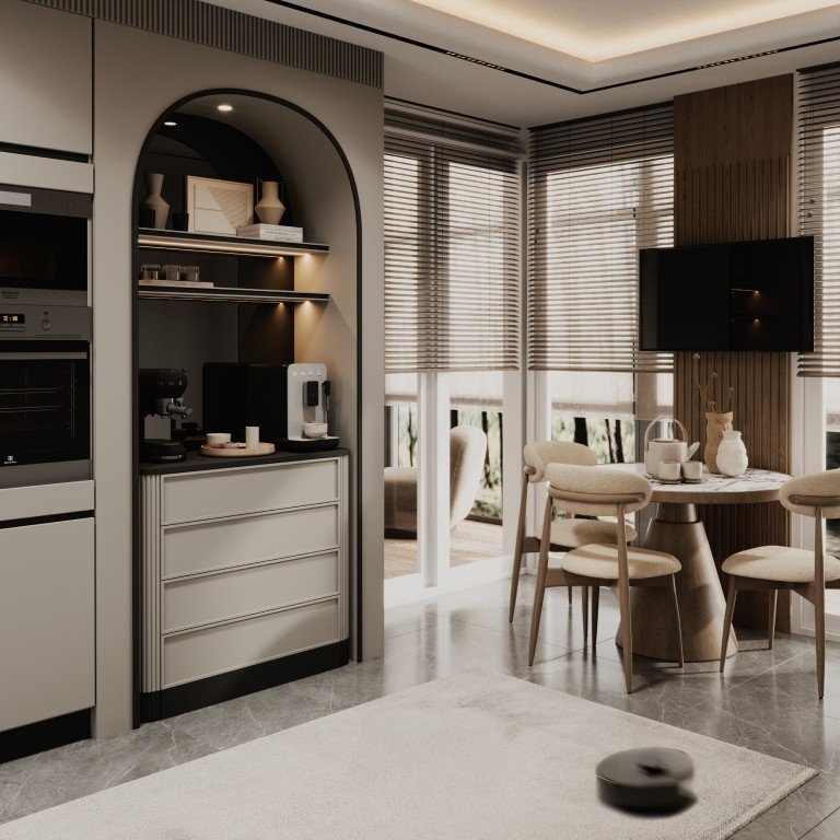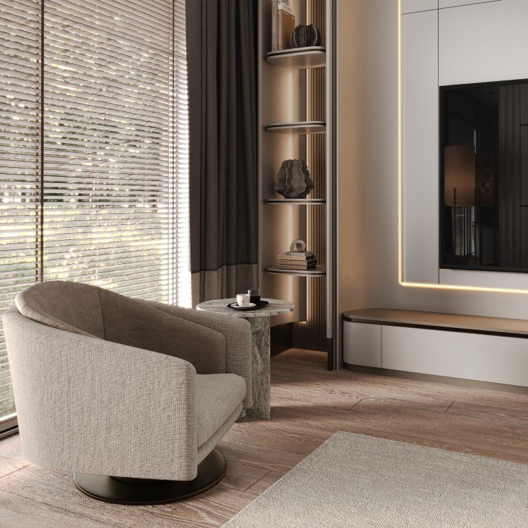 Her detay, kullanıcı konforunu ön planda tutacak biçimde düşünüldü. Açık renk paleti, doğal malzemeler ve gün ışığından maksimum fayda sağlayan mekan kurgusu projeye zarif bir denge kattı.